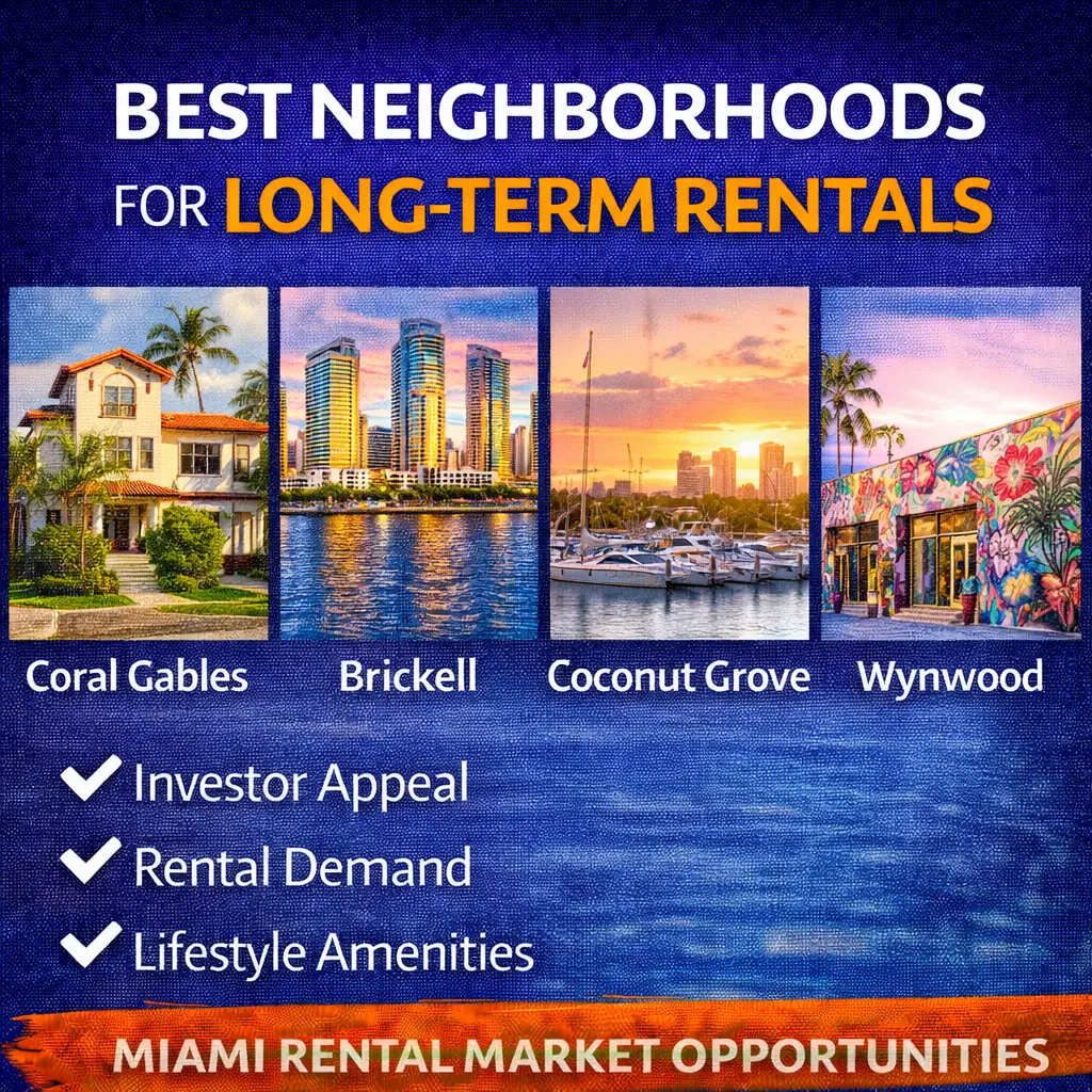 Explore the best neighborhoods for long‑term rentals in Miami. Discover areas with strong tenant demand, rental income potential, lifestyle appeal, and investment value for landlords and investors.