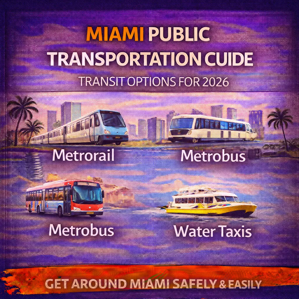 Discover Miami’s public transportation options with this 2026 guide. Learn how to use Metrorail, Metrobus, Metromover, water taxis, and more to navigate the city efficiently without a car.